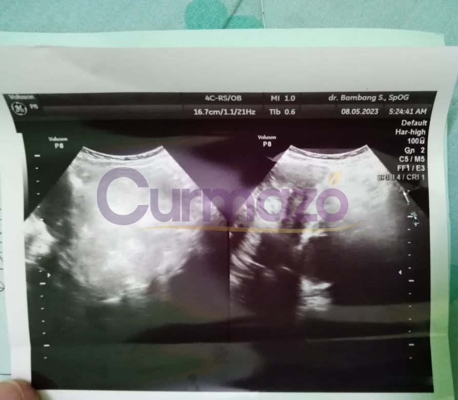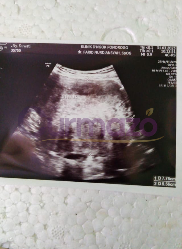Hampir 4 bulan pengobatan saya sudah tidak merasakan gejala seperti sebelumnya, haid sudah lancar dan teratur. 8 Mei 2023 Saya coba menjalani pemeriksaan, hasilnya sangat luar biasa kista berukuran 7,76 x 9,56 cm tersebut hilang total.