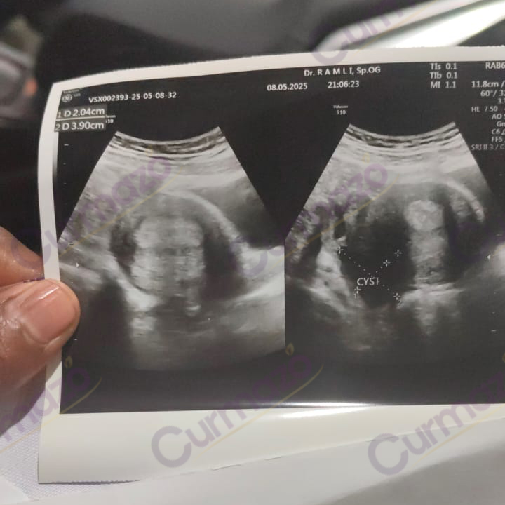20 Maret 2025, saya periksa ke dokter ternyata ada kista di kanan kiri sebesar 6 cm. Saya menolak dioperasi karena tidak mau diangkat kantung rahimnya.